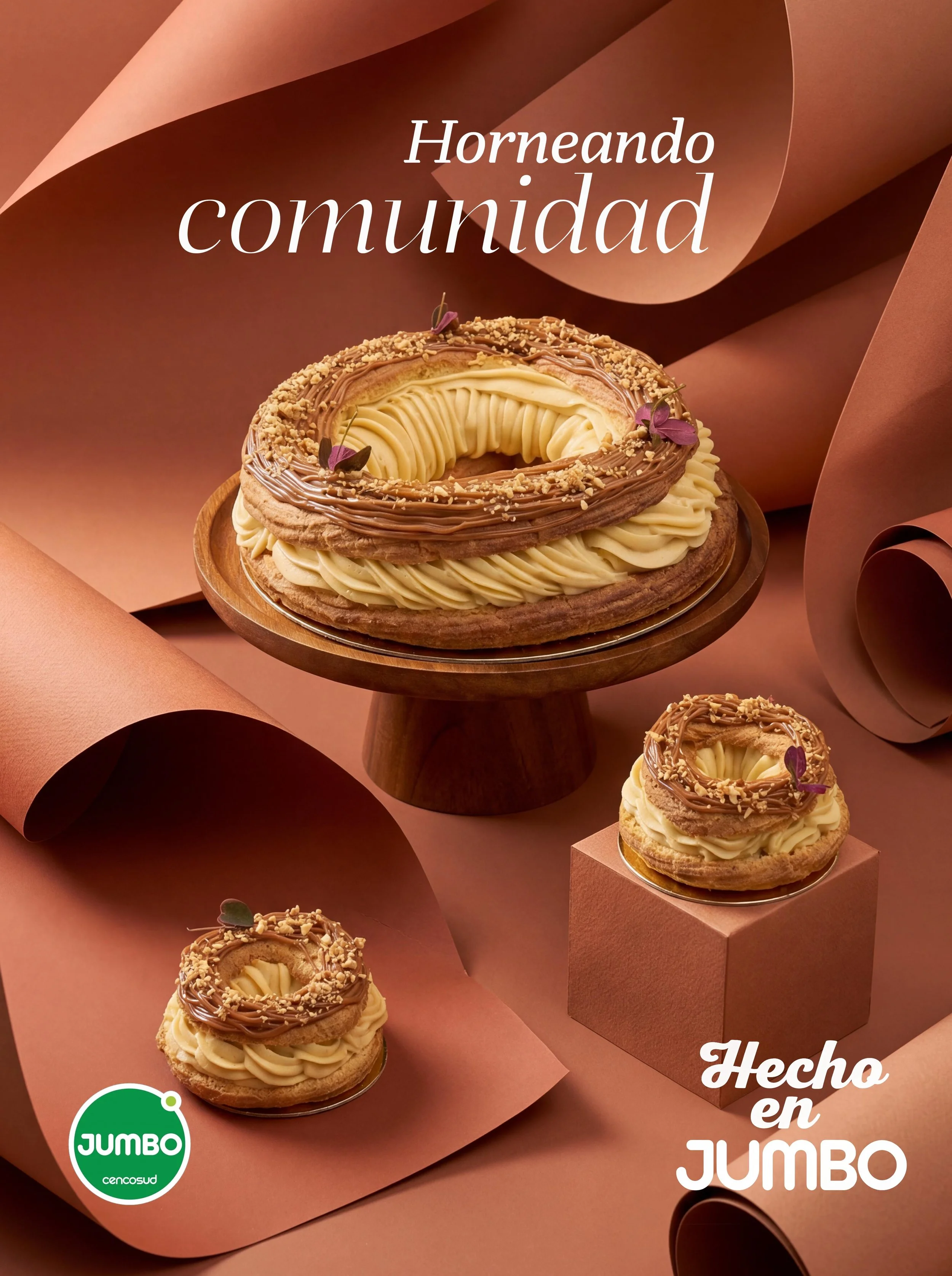 Pusimos a prueba nuevas formas de creación con IA aplicada a la fotografía publicitaria en este proyecto: las tortas son reales y los fondos y la producción son directamente creadas en IA generativa